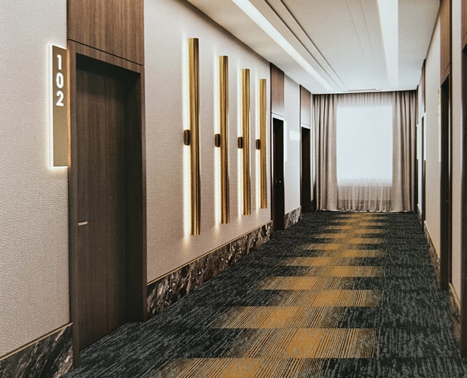 Tekstur dan warna karpet tile memberikan kesan rapi, hangat, dan elegan. Sangat cocok untuk kantor, hotel, ruang meeting, dan area komersial lainnya. - Tahan Lama & Kuat